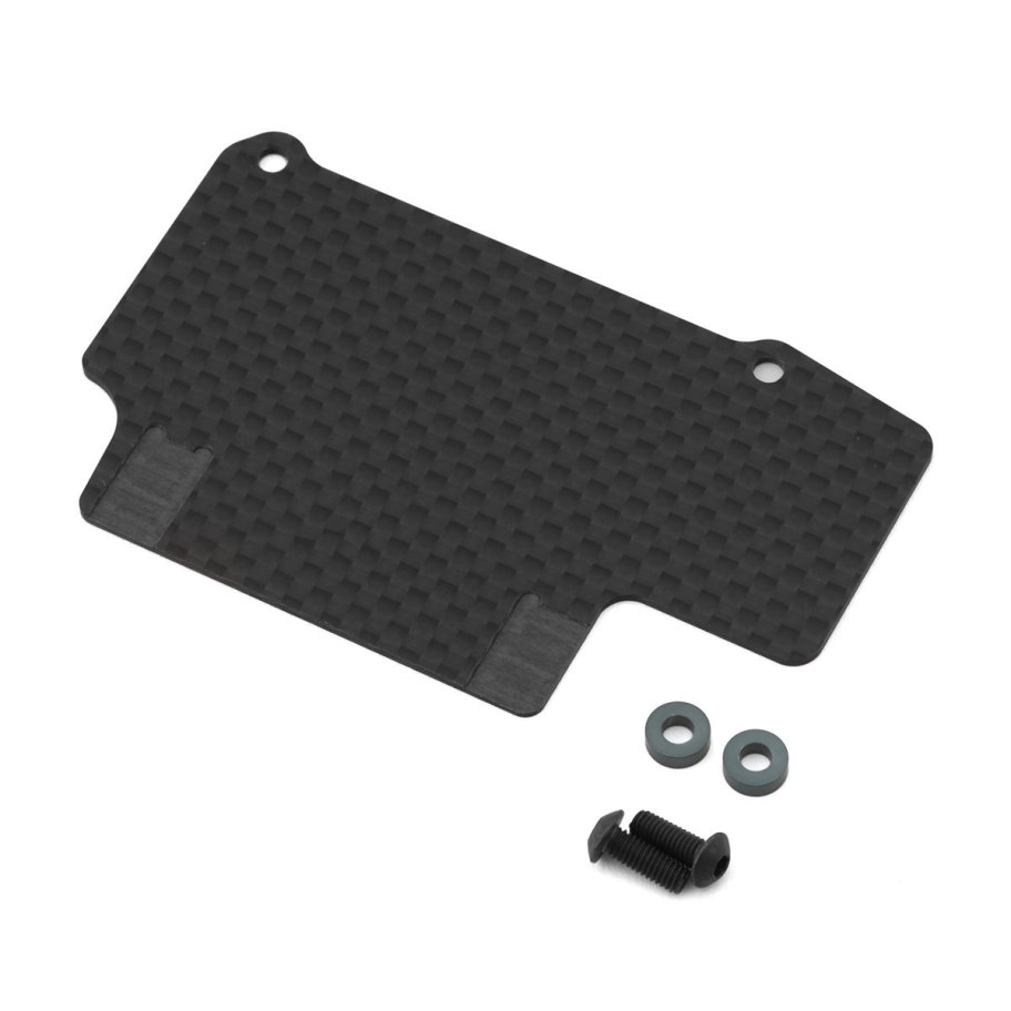 Mugen Carbon Fuel Tank Guard. This is an optional carbon fuel tank guard designed to keep the heat from the exhaust from heating the fuel in the tank. This guard is intended for the Mugen MBX8R and MBX8TR. Package includes one carbon guard and needed mounting hardware.
