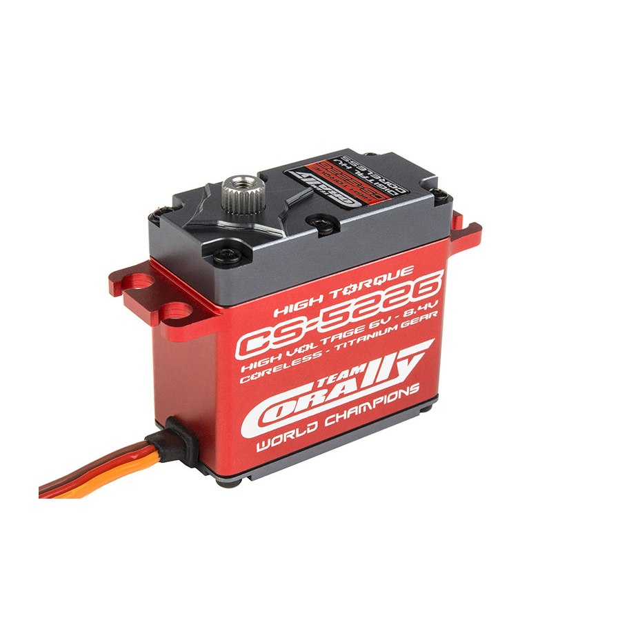 Este es el Team Corally CS-5226 HV, un servo de alto rendimiento desarrollado por los ingenieros de Corally. Olvídate de problemas, no existe un servo con mejor relación calidad/precio, con este Team Corally tendrás la potencia, precisión y seguridad necesarias para competir o entrenar a cualquier nivel.