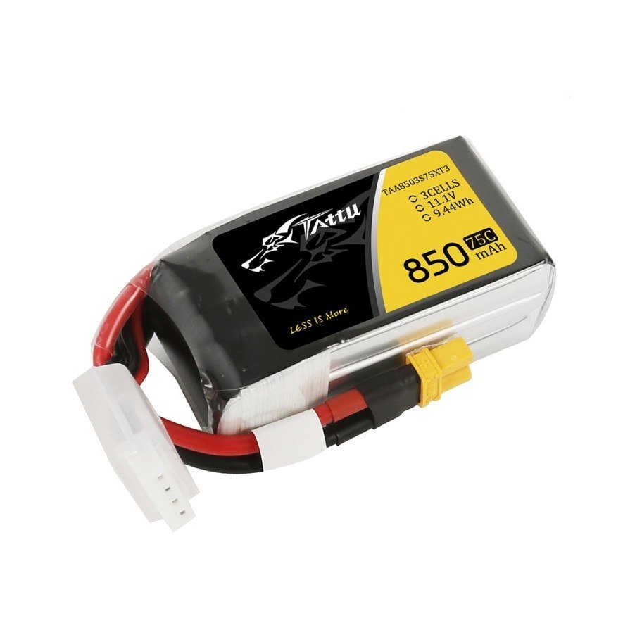 La batería Tattu 850mAh 11.1V 75C con conector XT30 es ideal para carreras de FPV, gracias a su peso ligero y su alta tasa de descarga. Esta batería ha sido diseñada especialmente para drones de carreras de tamaños 150mm y 180mm, ofreciendo un rendimiento de primer nivel en competiciones.