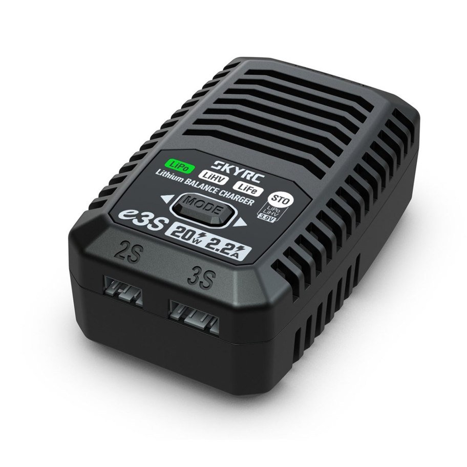 El SkyRC e3S es la evolución definitiva del cargador económico para modelismo y airsoft. Si buscas una solución "Plug & Play" que elimine las complicaciones de los menús complejos, este es tu cargador. Diseñado para cargar baterías de 2 a 3 celdas (2S y 3S), este dispositivo se conecta directamente a la toma de corriente (AC), sin necesidad de fuentes de alimentación externas.