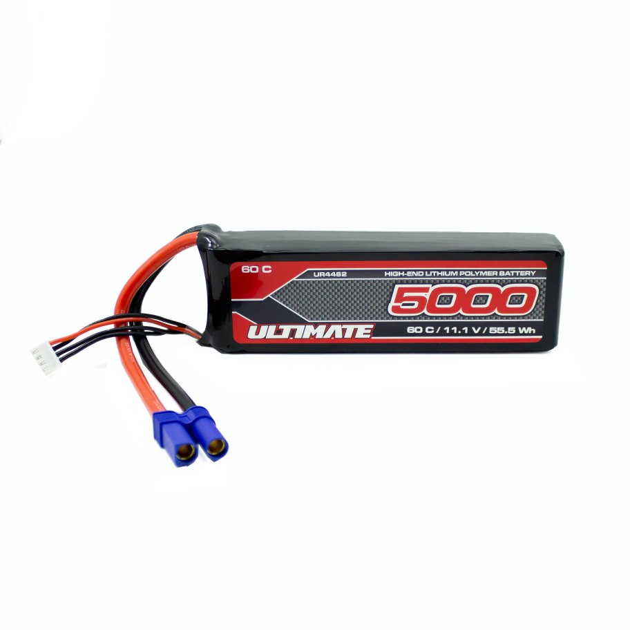 La Ultimate 5000 mAh 11,1 V 60C (LiPo) con conector EC5 ofrece entrega de corriente estable, baja resistencia interna y formato compacto para coches RC que requieren rendimiento consistente en aceleración y autonomía. Su tamaño de 135×43×25 mm la hace adecuada para muchos tipos de coche escala 1/10 y conector EC5.