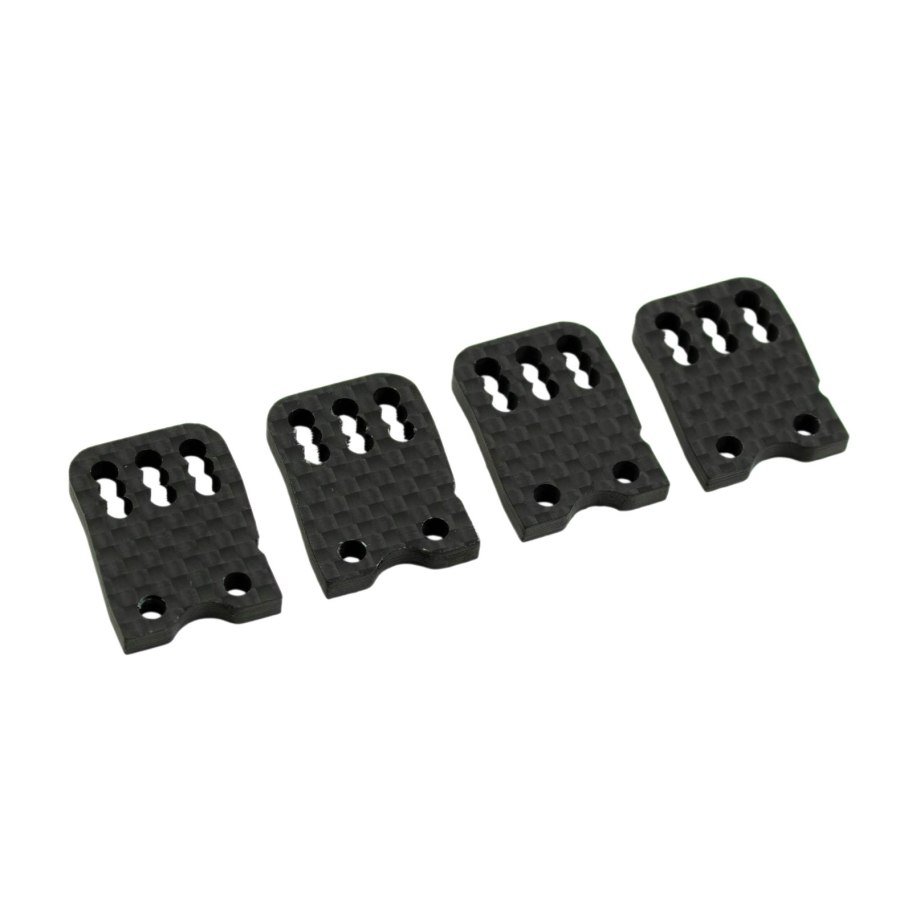 Si buscas el reglaje perfecto para tu Mugen MBX8R sin complicaciones, estas placas de carbono de Ultimate Racing son, posiblemente, una de las mejores inversiones que puedes hacer. Olvídate de llevar varias piezas sueltas en la caja de herramientas; con este set tienes todo lo necesario para ajustar el centro de balanceo (roll center) trasero en un solo componente.