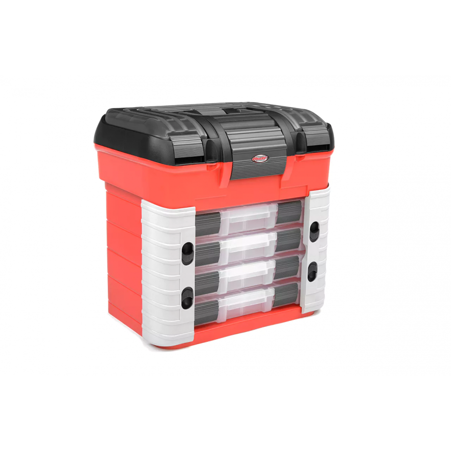 La boîte Team Corally comprend quatre grandes boîtes de rangement avec séparateurs ajustables, trois compartiments supplémentaires dans le couvercle avec séparateurs mobiles et un compartiment inférieur spacieux pour les objets plus volumineux. Sa structure résistante permet de l’utiliser comme siège, offrant un confort supplémentaire sur le circuit. Grâce à son système de verrouillage sécurisé avec clips à ouverture facile, tout votre matériel reste protégé et à portée de main.